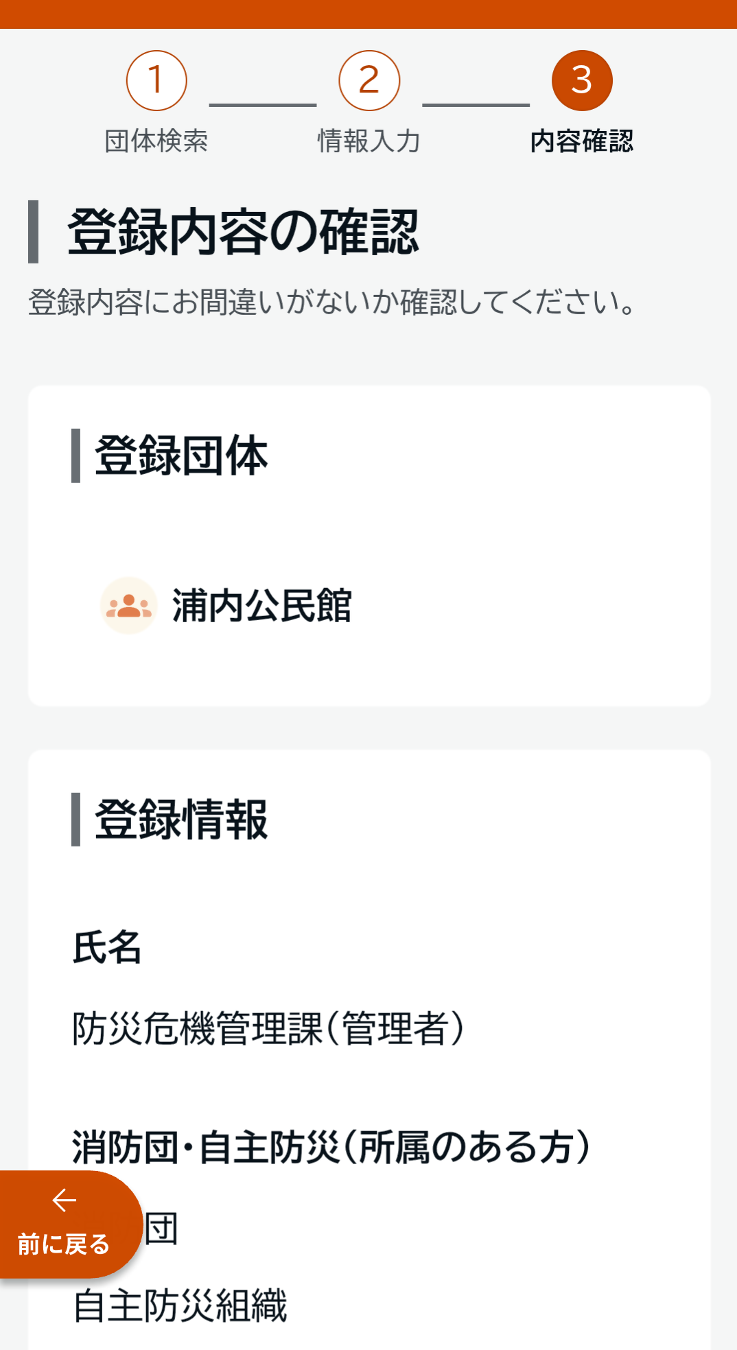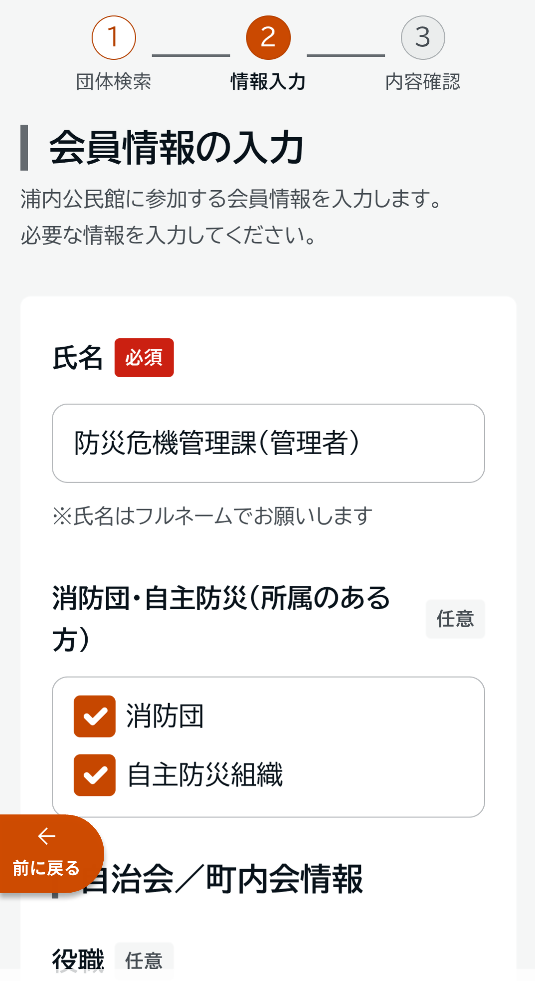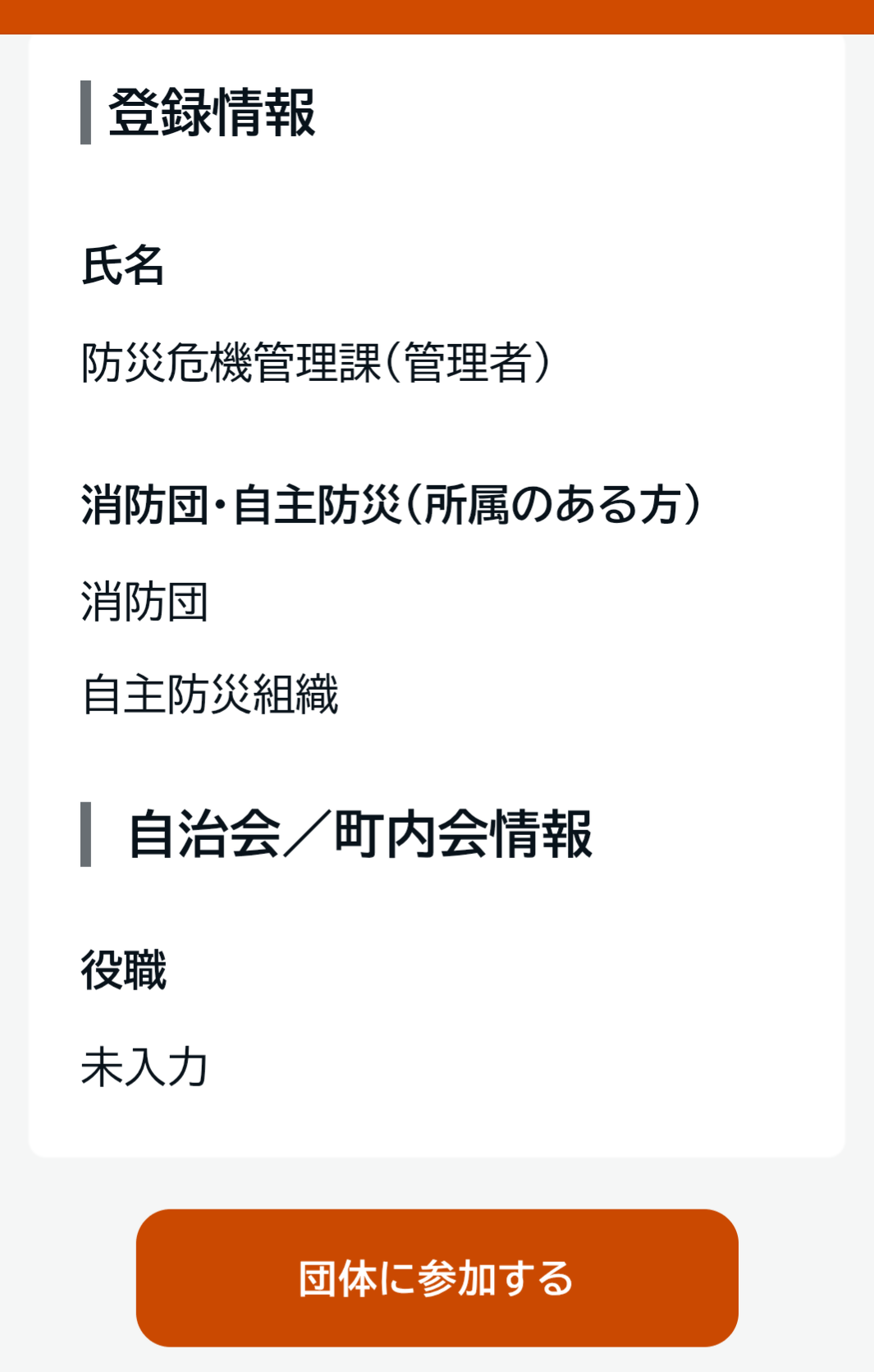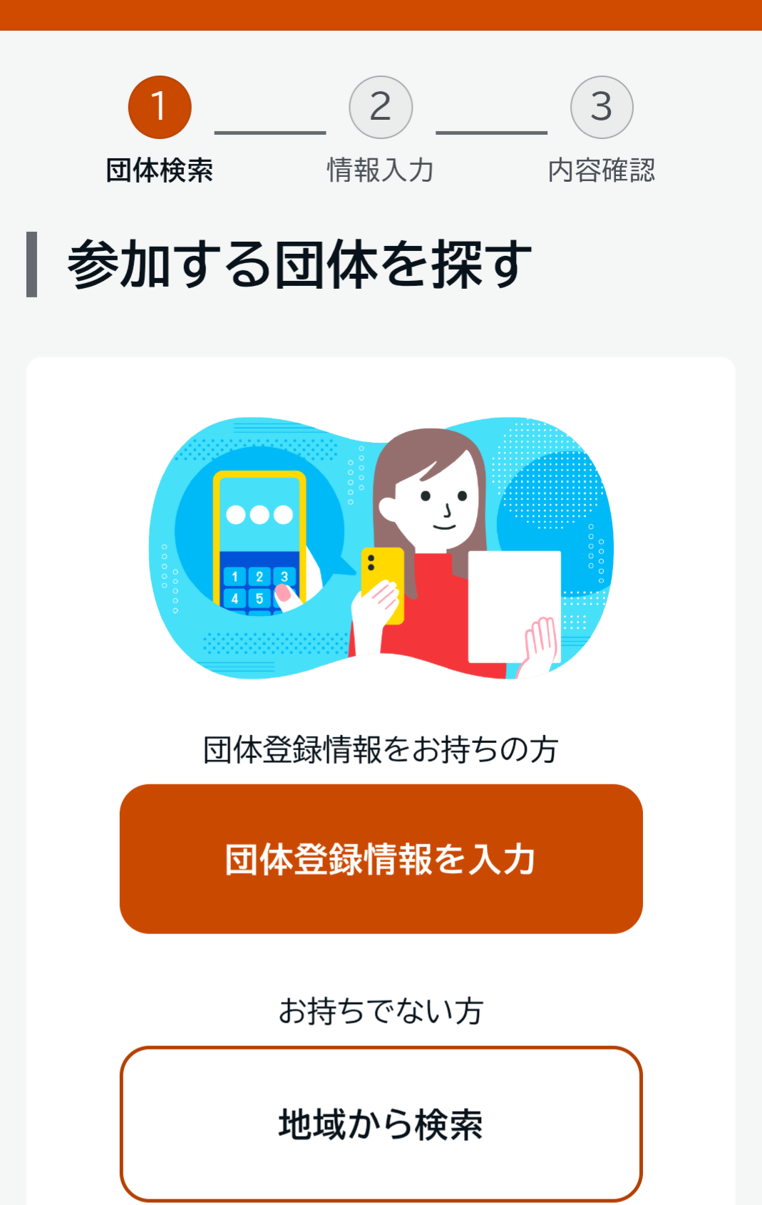 会員情報(氏名や役職)を入力してください | 入力した登録内容を確認してください | 「団体に参加する」を選択してください |