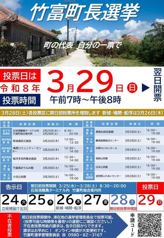 〒907-8503 沖縄県石垣市美崎町11番地1 竹富町選挙管理委員会
